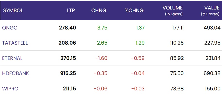 India's benchmark equity indices ended the session and the week on a higher note on Friday as strength in financial and energy stocks outweighed continued losses in information technology. The BSE Sensex added 316.57 points or 0.38% to settle at 82,814.71 and the Nifty 50 gained 0.5% to close at 25,571.25. Intraday, both blue-chip indices gained 0.8%.