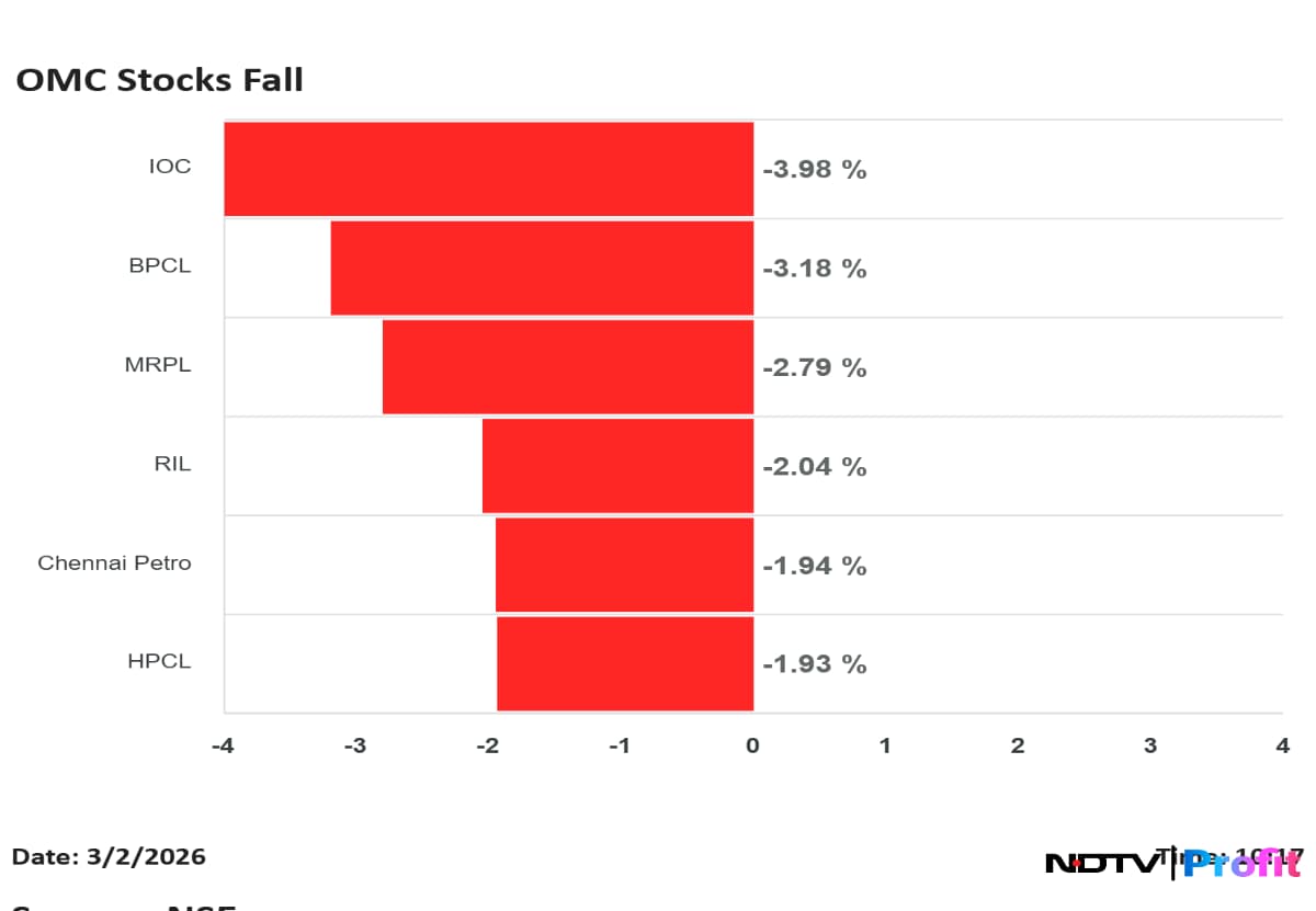 Indian Oil, BPCL, Mangalore Refinery, Chennai Petroleum and HPCL all fell during early trade.