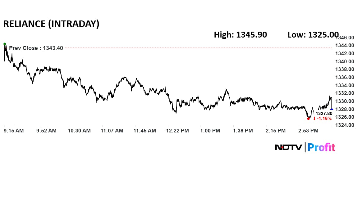 Shares of Reliance Industries ended over 1% lower ahead of fourth quarter results and amid a broader decline in the market.