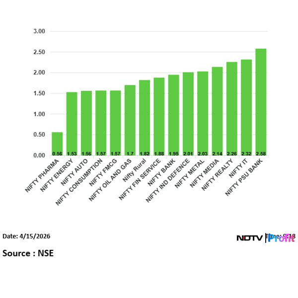 The Nifty PSU Bank index led gains with a 2.6% rise.