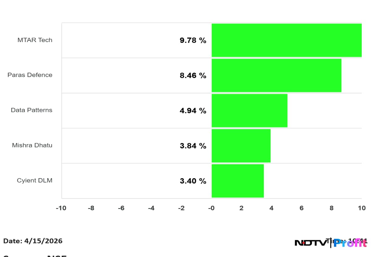 Paras Defence rose 8.46%, while Data Patterns added 4.94%.