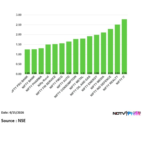 All Nifty sectoral indices ended in the green. Nifty IT and Nifty Realty were the top performers, both rising over 2%, while Nifty Energy advanced for the seventh straight session.