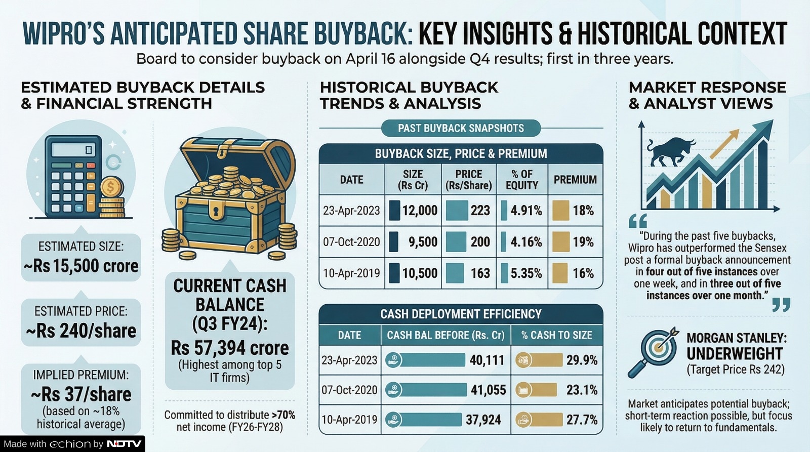 Wipro shares held gains after the company said its board will consider a buyback along with Q4 results on April 16. The buyback plan is in focus as investors assess the company’s capital allocation move alongside its earnings update.