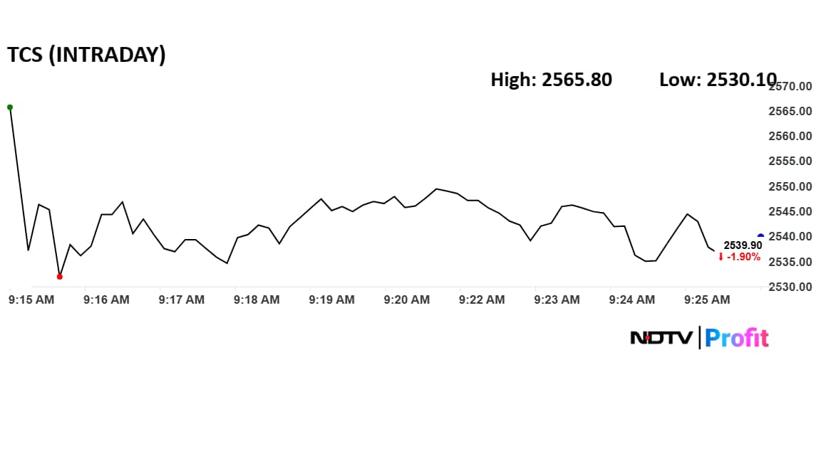 TCS shares fell as much as 2.3% to Rs 2,530 after the Q4 results announcement. The stock was the top loser on both the Nifty and the Sensex.