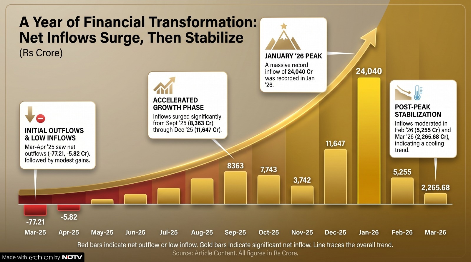 Active equity inflow stood at Rs 40,540 crore in March. That compares with Rs 25,978 crore in the previous month.