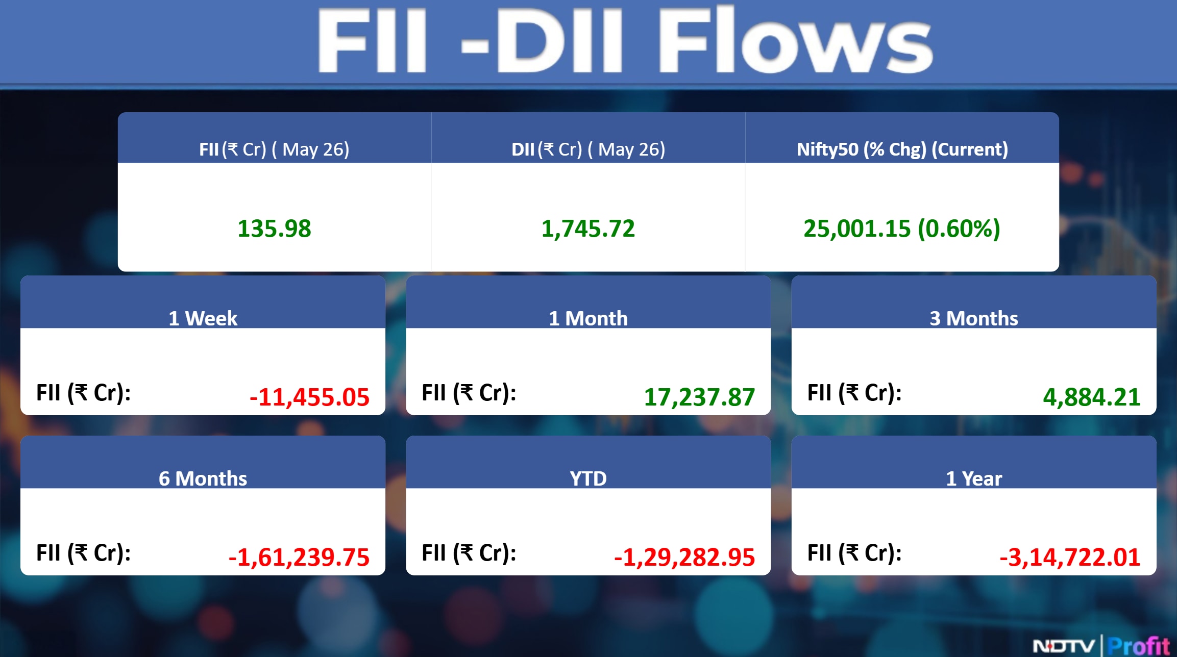 Nifty Options May 29 Expiry: Maximum Call open interest at 26,000 and Maximum Put open interest at 24,000.