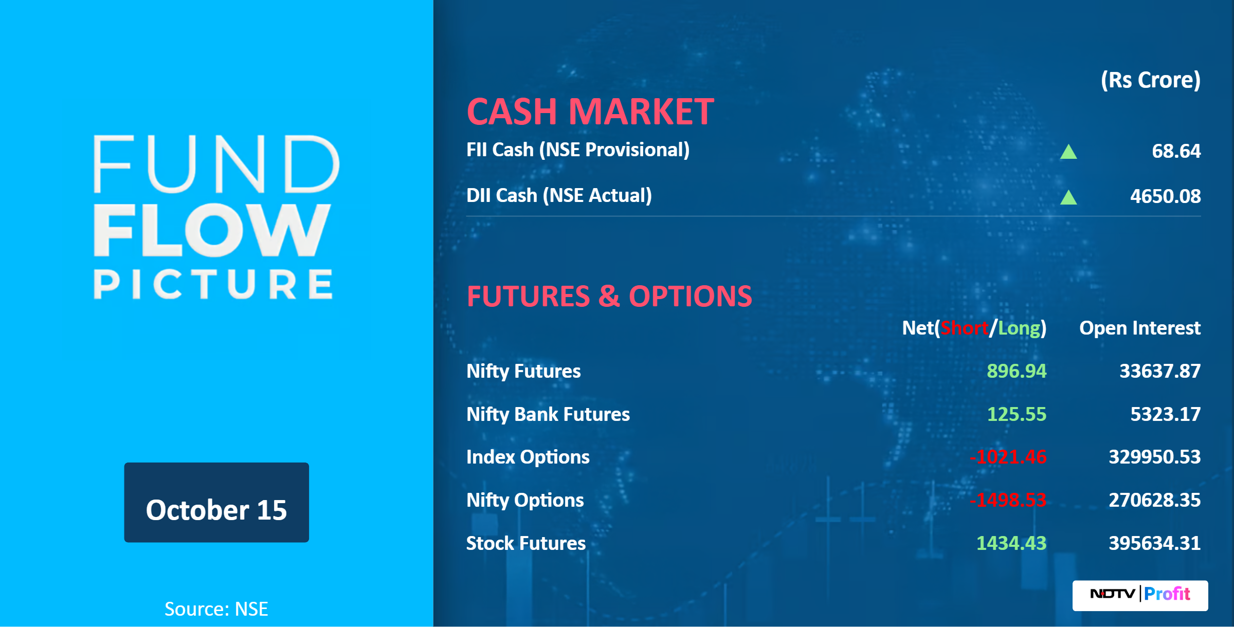 Nifty Oct futures is up by 0.91% to 25,435 at a premium of 112 points.
