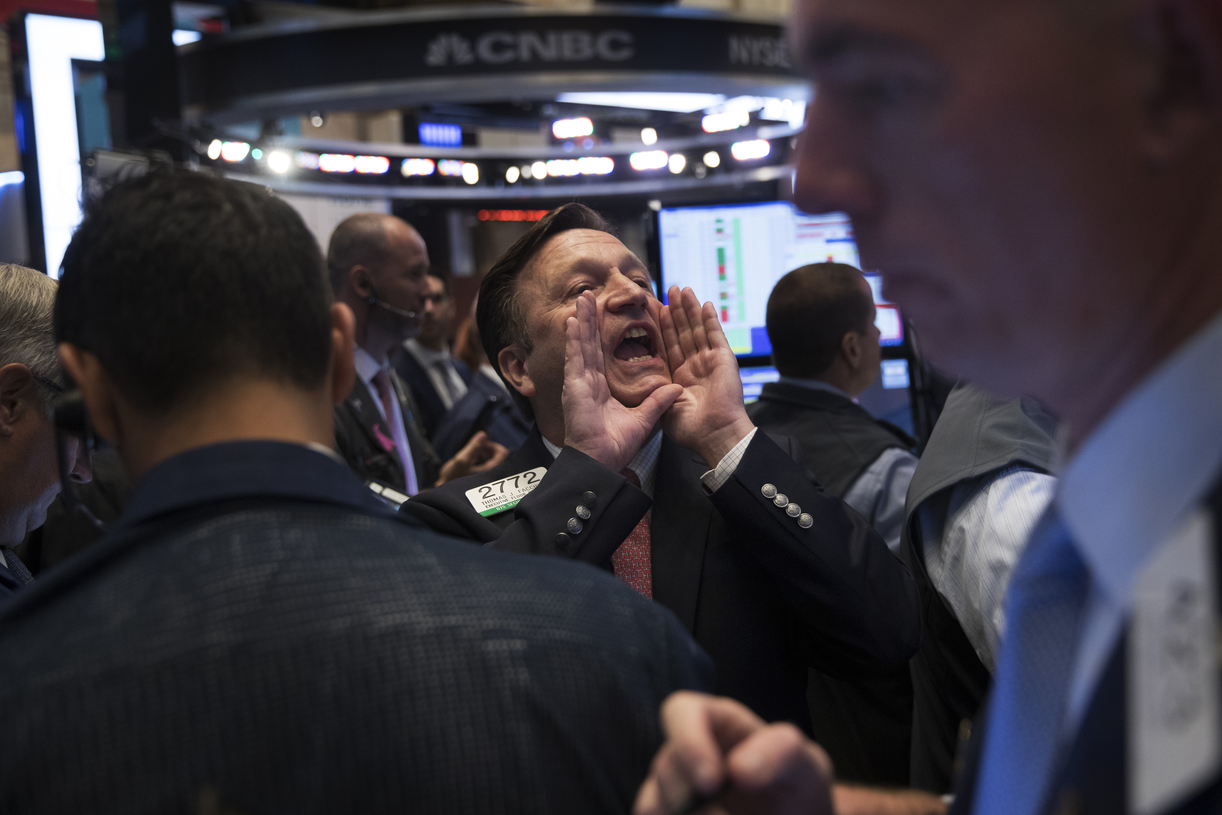 Traders work on the floor of the New York Stock Exchange (Photographer: Victor J. Blue/Bloomberg)