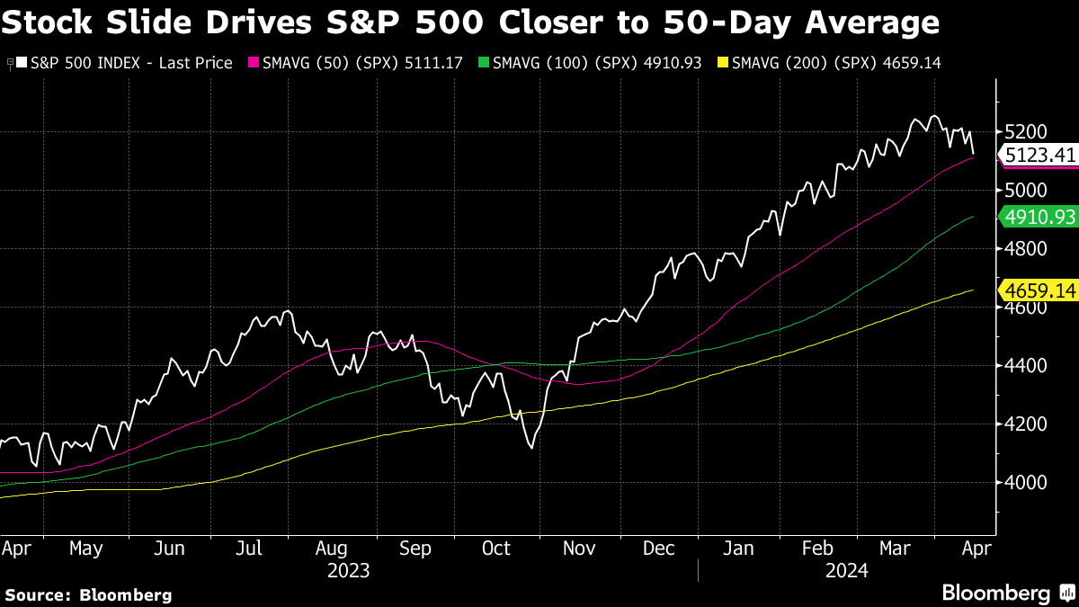 Equities saw their worst day since January after a news report that Israel was bracing for an attack by Iran on government targets. Approximately 40 launches were identified crossing from Lebanese territory, some of which were intercepted, the Israel Defense Forces wrote in a post on X. US President Joe Biden said he expects Iran will attack Israel sooner rather than later — and his message to Iran is “don't” do it.
