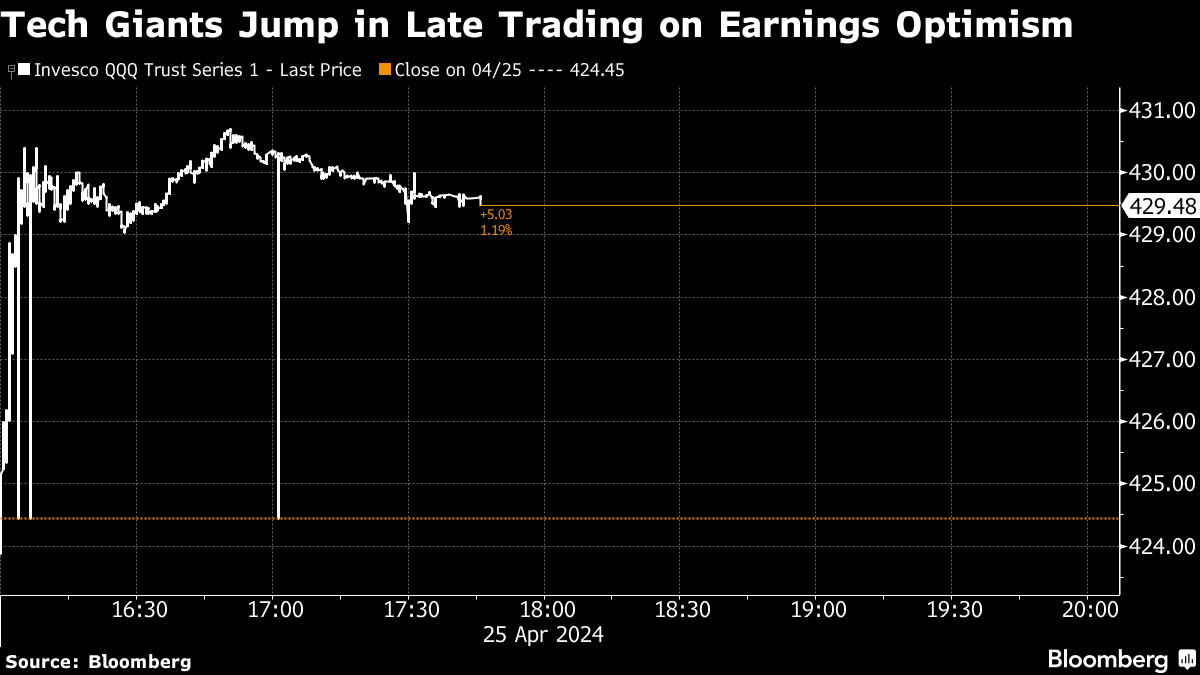A $250 billion exchange-traded fund tracking the Nasdaq 100 (ticker: QQQ) climbed 1.2% after the close of regular trading. In a sigh of relief to investors worried about lofty valuations of the sector that has powered the bull market, Alphabet crushed sales estimates and announced a dividend. Its fellow megacap Microsoft also beat forecasts, lifted by corporate demand for the software maker's cloud and artificial-intelligence offerings.