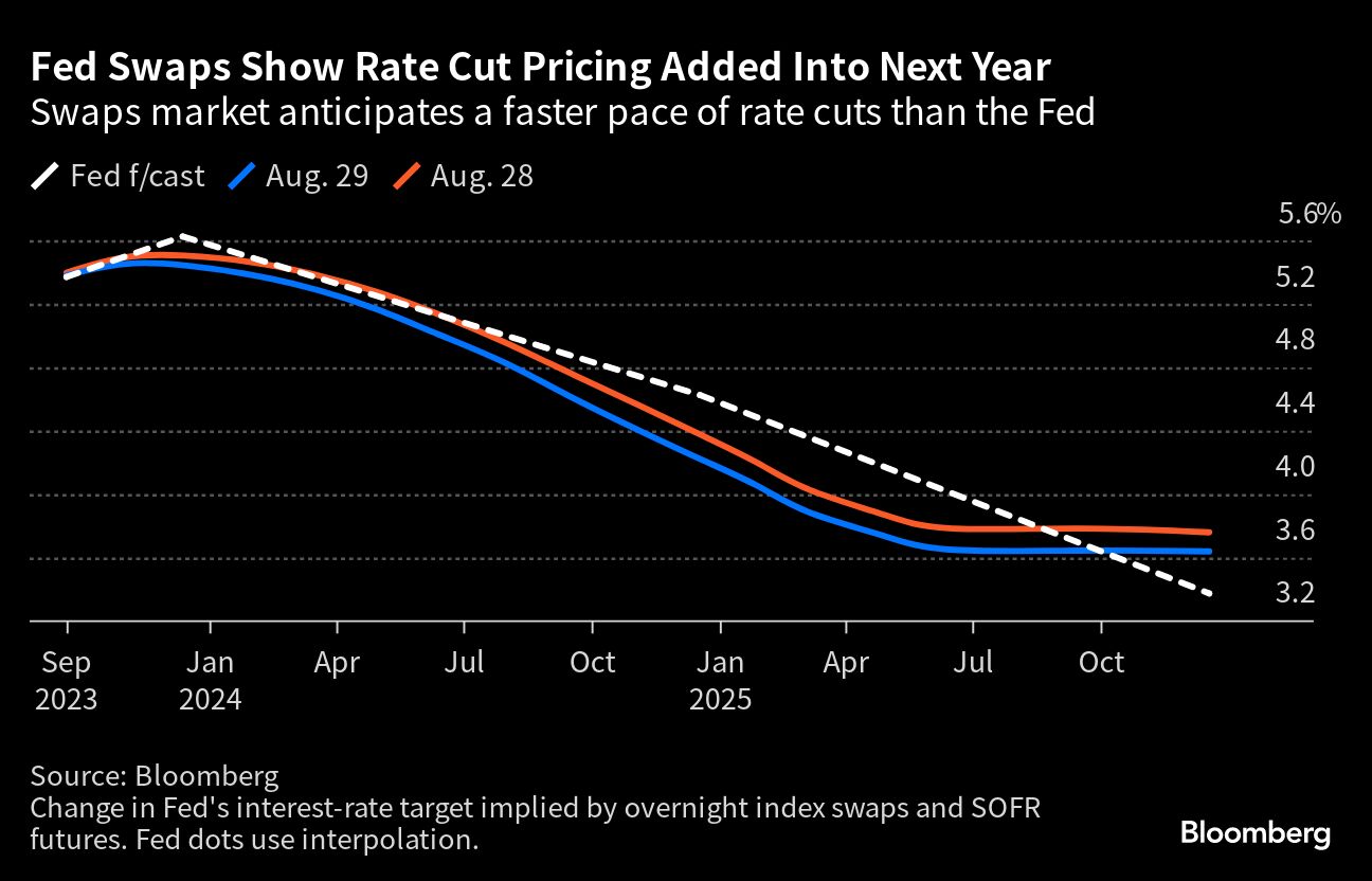 The S&P 500 topped 4,500. Apple Inc. led gains in megacaps, while regional banks fell. Bloomberg News reported the Fed issued a slew of private warnings to lenders with assets between $100 billion and $250 billion in a bid to tighten supervision. In late trading, software company Salesforce Inc. climbed on a bullish outlook. Treasury yields edged lower. Swap contracts priced in less than a 50% chance of another quarter-point US rate increase this year.