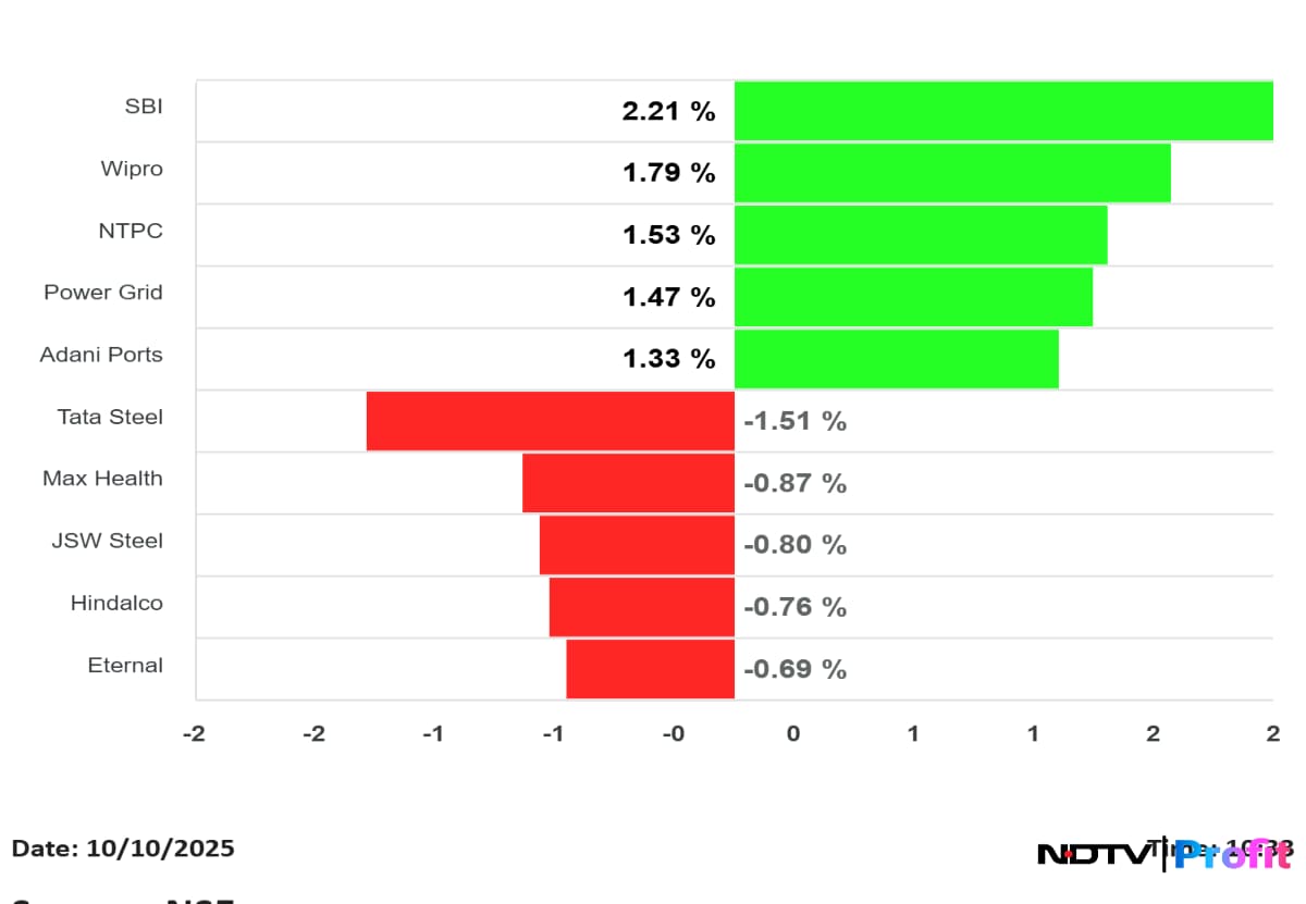The gains in the Nifty 50 were lead by SBI with 2% gains and Wipro closely following with 1.79% gains.