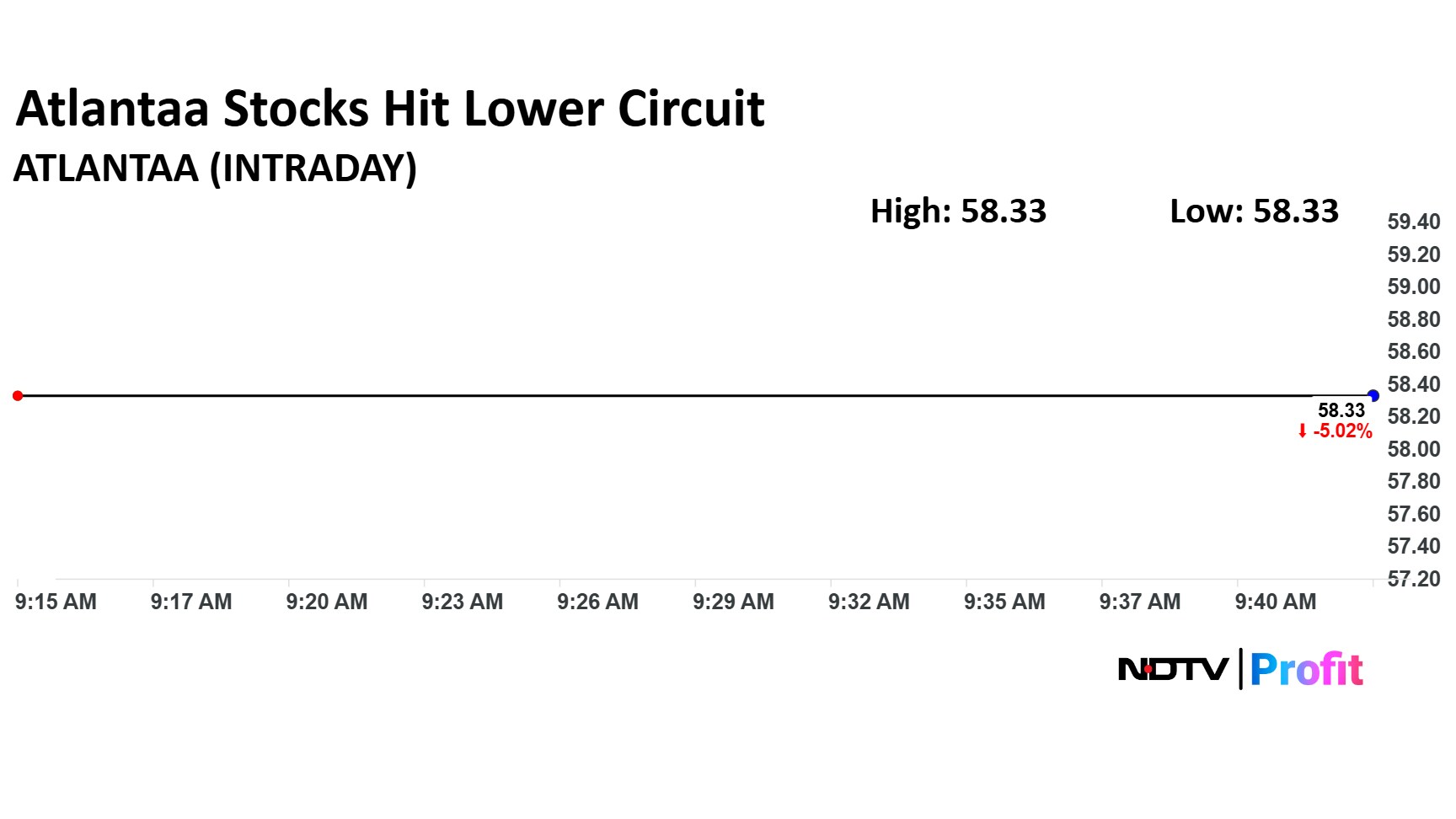 The shares of Atlantaa is locked in lower circuit for the third straight session. The scrip's lower price band of Rs 58.33 was hit in trade when the stock declined over 5%.