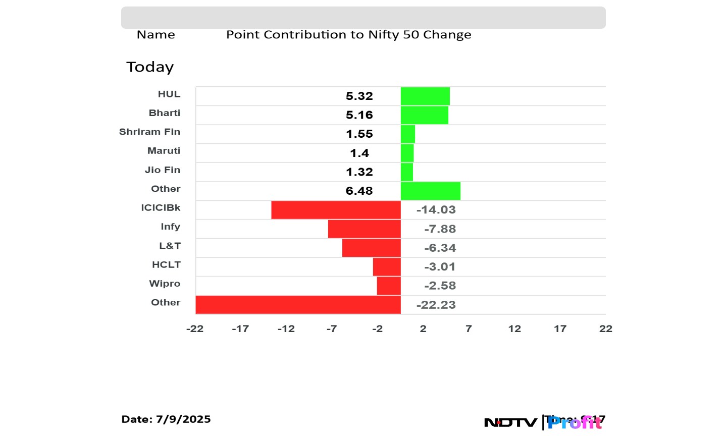ICICI Bank Ltd., Infosys Ltd., Larsen & Toubro Ltd., HCLTech Ltd., and Wipro India Ltd. weighed on the Nifty 50 index.