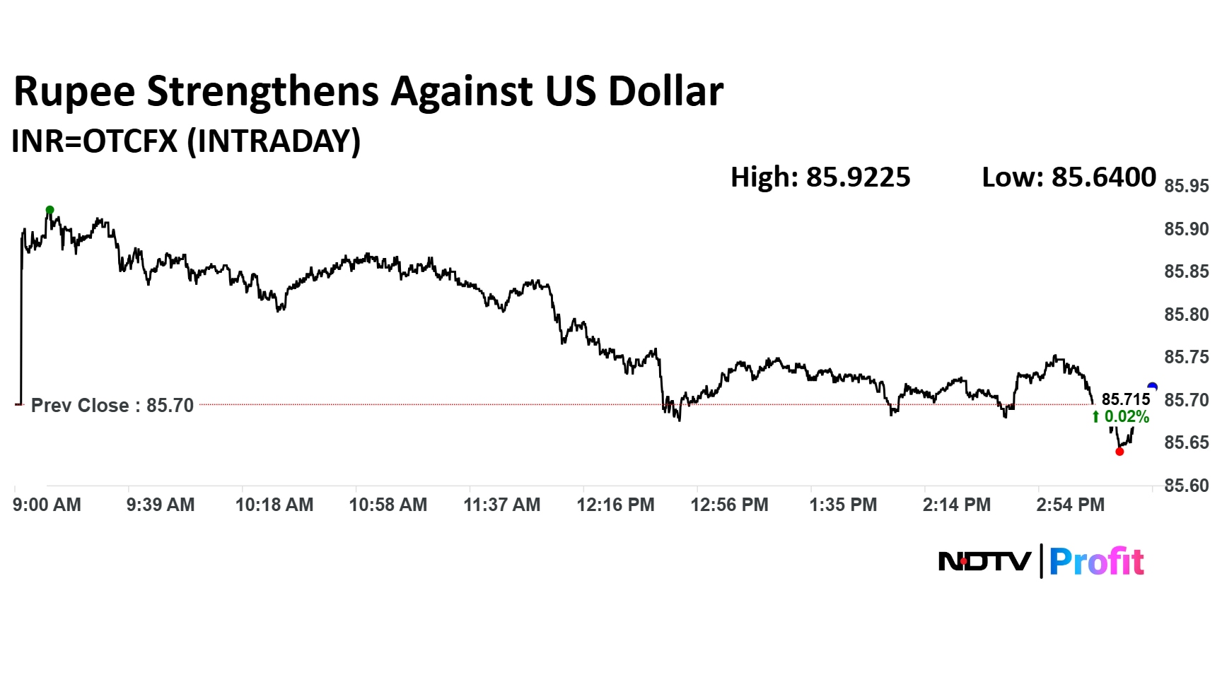 Rupee closed 2 paise stronger against US Dollar at 85.68