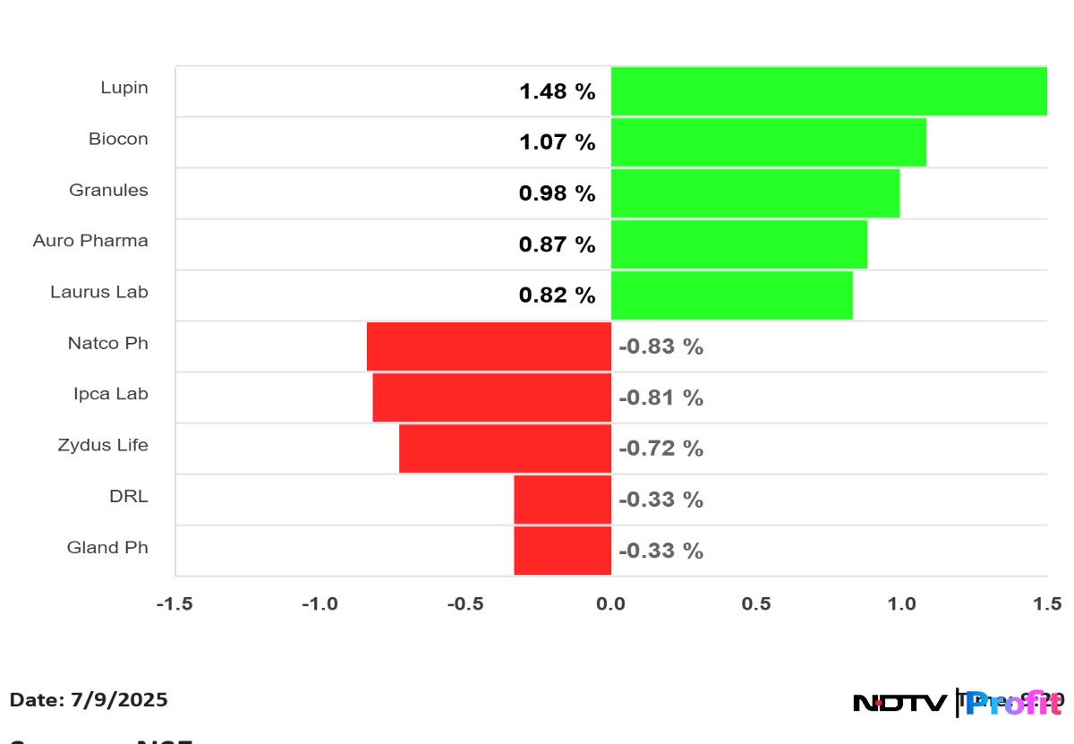 Lupin Ltd., Biocon Ltd., Granules India Ltd., shares gained despite the sentiment for overall pharmaceutical stocks got affected after US President Donald Trump threatened to impose steep tariffs on drug import. Trump threatened to impose 200% tariff on drugs within a year.