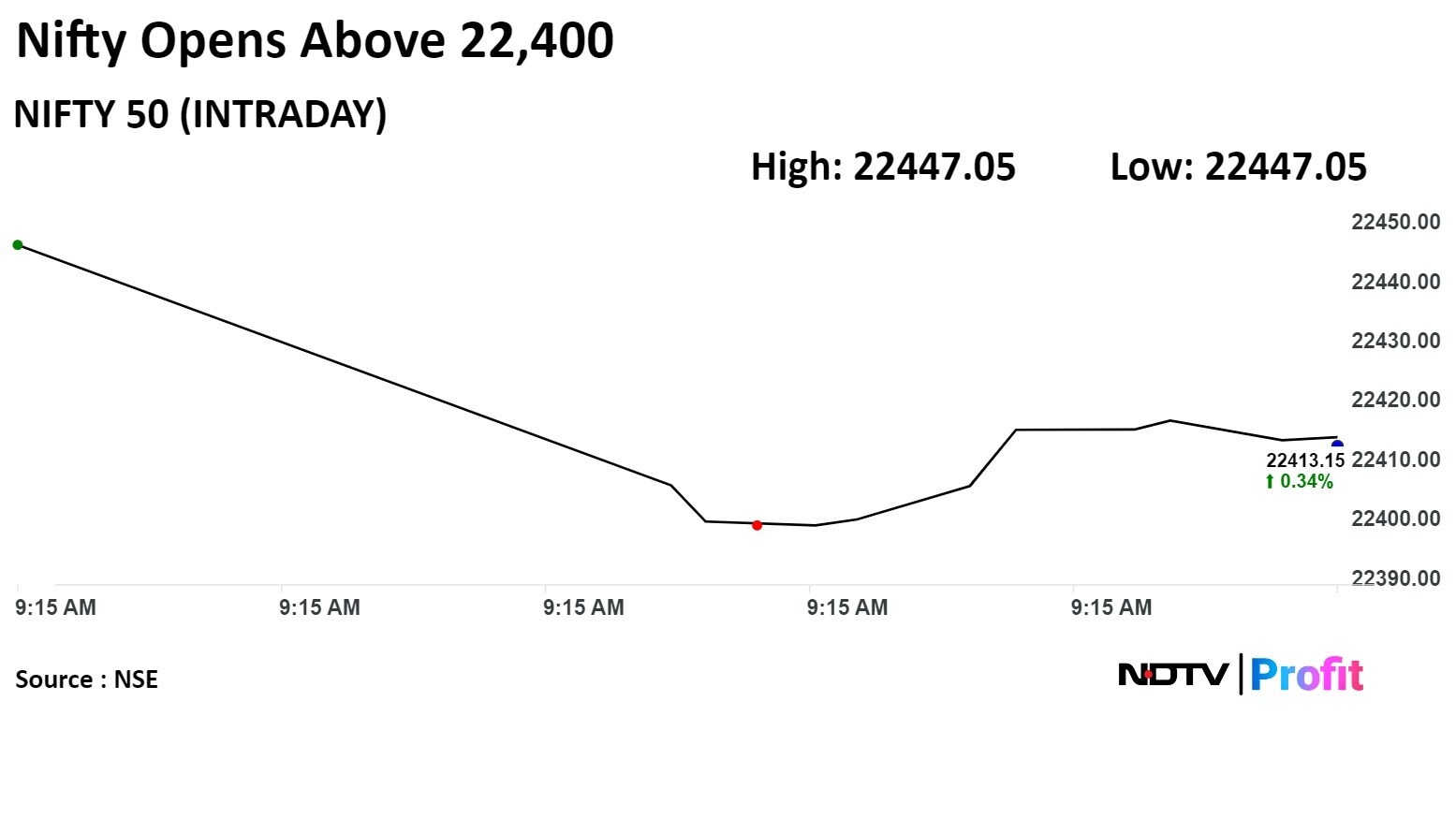 The Nifty 50 hit an intraday high of 22,447.55 and the Sensex touched a high of 74,059.89 so far on Tuesday.