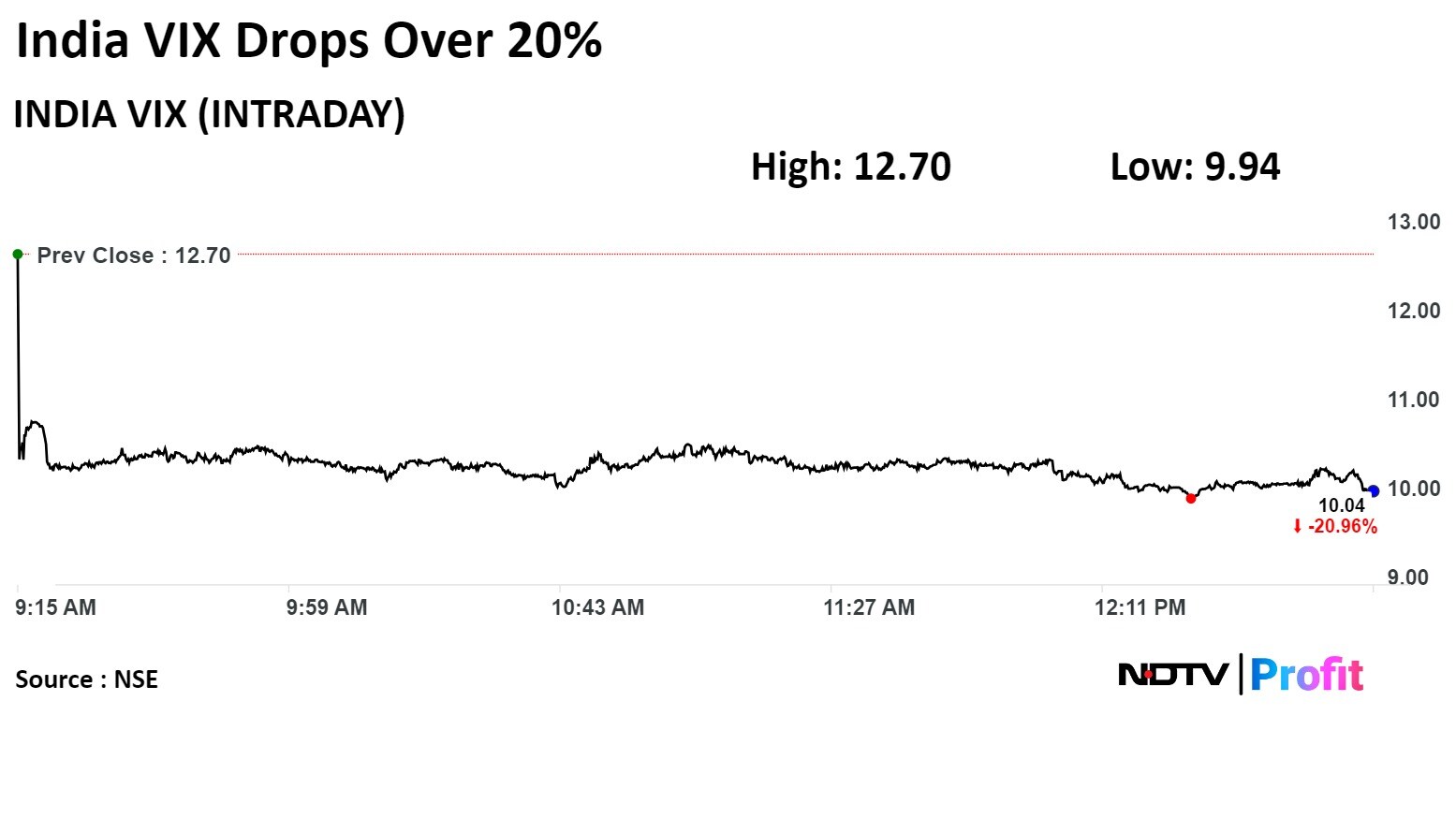 The India NSE Volatility Index ended 19.72% lower at 10.20 on Tuesday. "The suddenness of VIX’s fall today, especially when Nifty barely rose above 0.5%, needs to be factored in when acting on the VIX’s signal," said Anand James, Chief Market Strategist, Geojit Financial Services.
