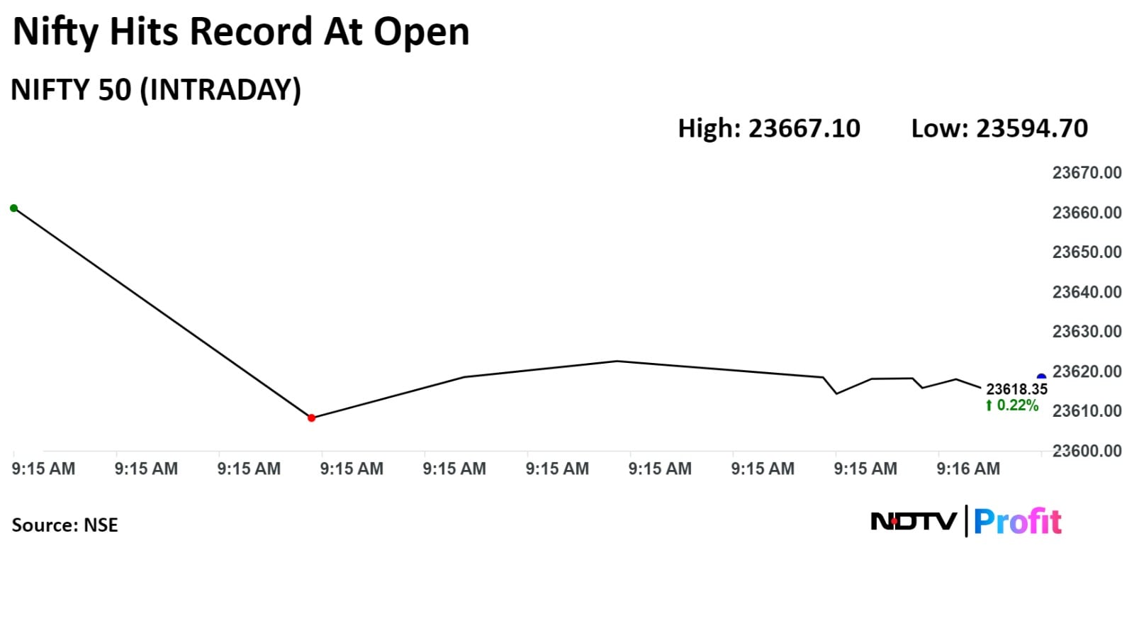 Shortly after open, the benchmark Nifty 50 gained 0.42% and scaled a fresh high of 23,667.10. Meanwhile the Sensex opened at highest level since its inception.