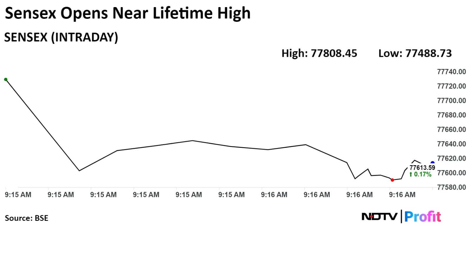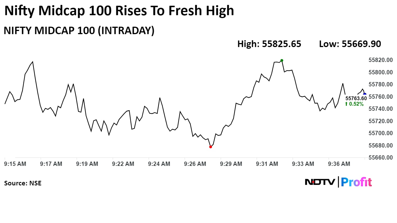 As of 09:19 a.m., the Nifty 50 was 52.50 points or 0.22% higher at 23,619.50, and the S&P BSE Sensex was 119.51 points or 0.15% higher at 77,598.44.