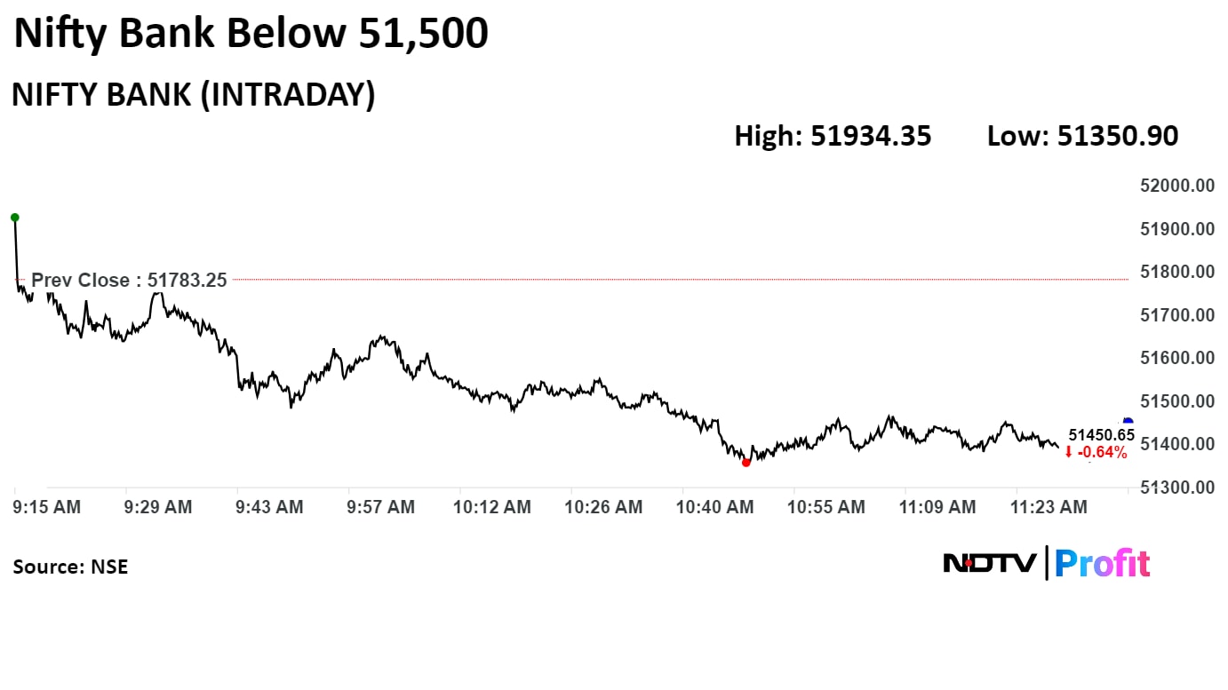 On the flipside, the Nifty Bank index, which had outperformed significantly on Thursday, is seeing some cooling off on Friday, Agarwala said. "The cool-off may extend by 200–300 points in this session or maybe next week. From there, markets may see another round of buying," he said.