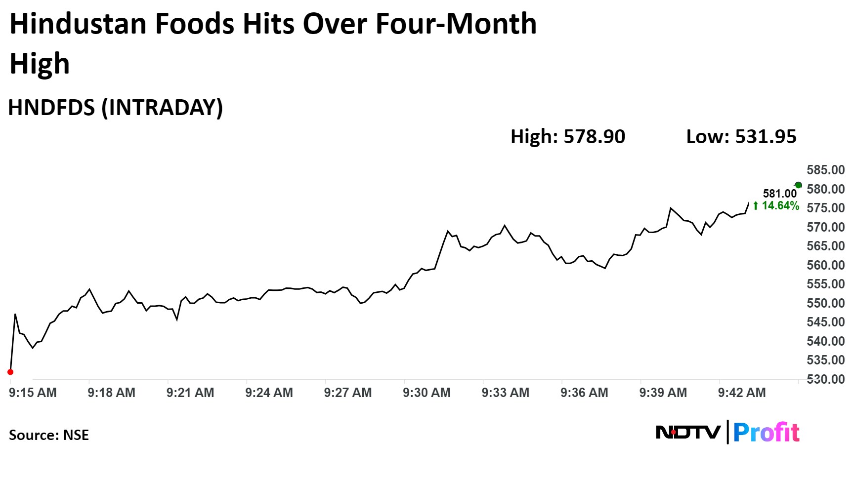 The scrip gained 42.17% in 12 months while it declined 4.45% on year to date basis. Total traded volume so far in the day stood at 9.1 times its 30-day average. The relative strength index was at 69.08.