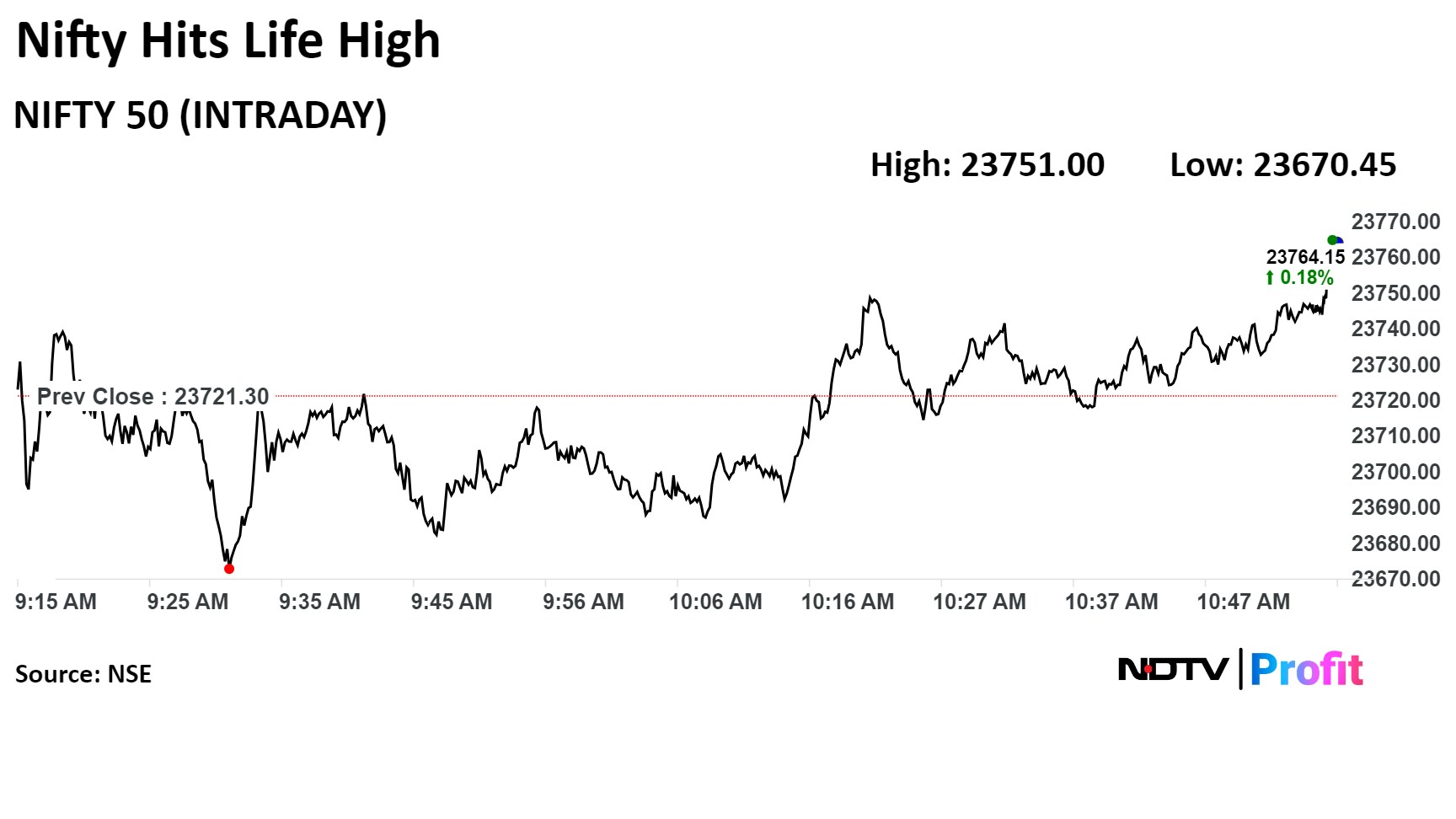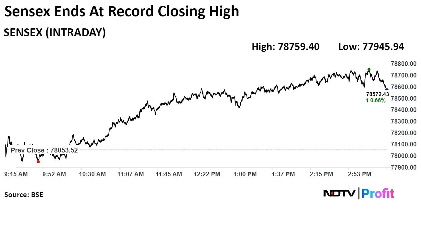 Soon after opening, Sensex hit its record high of 78,188.16 points and Nifty hit a high of 23,749.50 as against its record high of 23,754.15.