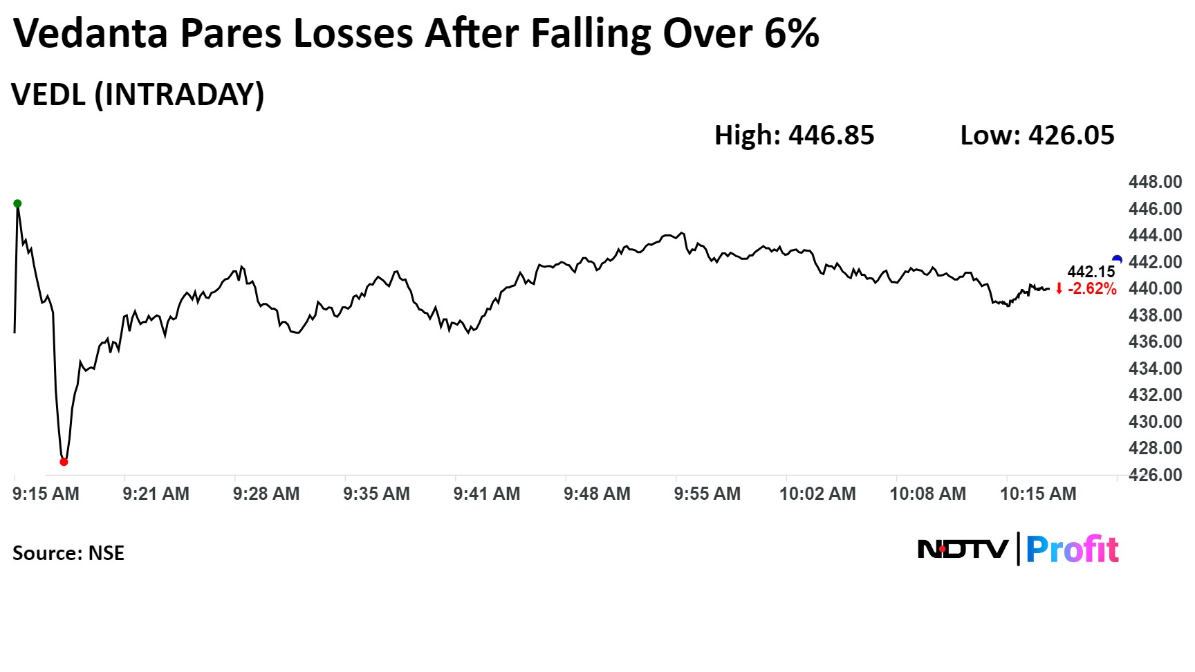 Shares of Vedanta Ltd. fell over 6% after a large block deal on Wednesday. About 4% shares changed hands, with promoter sales raising roughly Rs 6,000 crore.