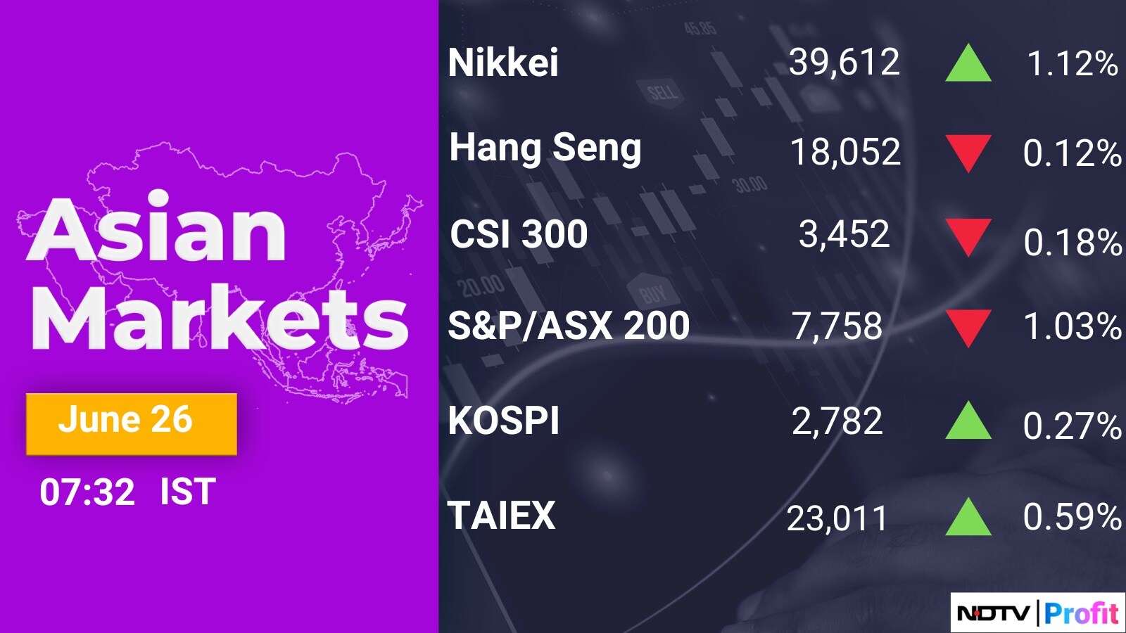 The Nikkei 225 was trading 204.32 points or 0.52% higher at 39,377.47, and the S&P ASX 200 was trading 41.30 points or 0.53% lower at 7,797.50 as of 06:55 a.m. A surge in US technology firms boosted stock markets as traders appeared to overlook soft economic indicators.