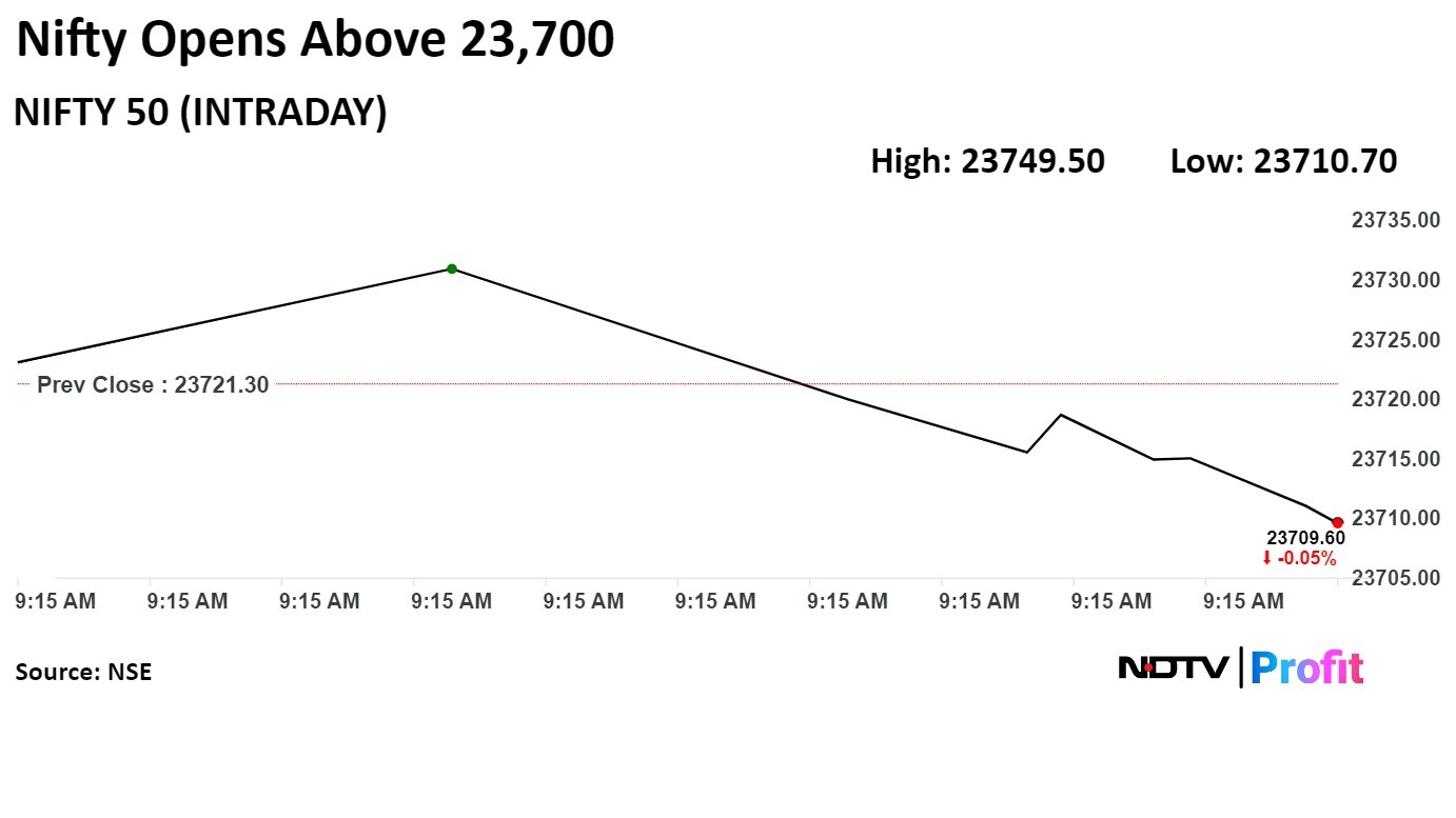 At pre-open, both the Nifty and Sensex were flat at 23,723.10 and 78,098.84 respectively.