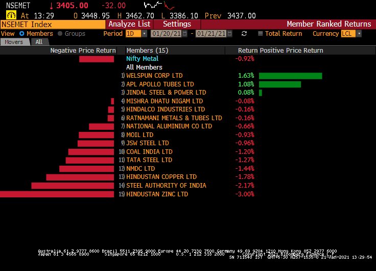 • Nifty Metal is the top sectoral laggard; down 1.2%