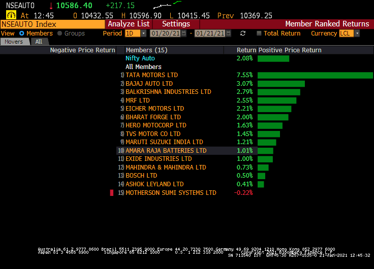 • Nifty Auto index is the top sectoral gainer; up 1.3%