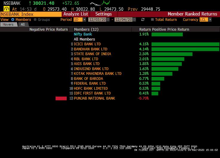 Today's session belonged to banking stocks. The Nifty Bank gained 300 points in the final hour of trade. The index crossed the mark of 30,000 to end 600 points higher at 30,052. The index is now 130 points away from its February high of 30,187.
