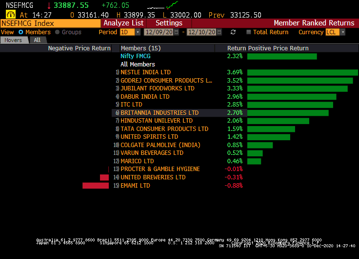 What bucked the trend today were FMCG stocks. The index ended with gains of 2.8% and at a record high. This was also the biggest single-day gain for the stock in over six months.