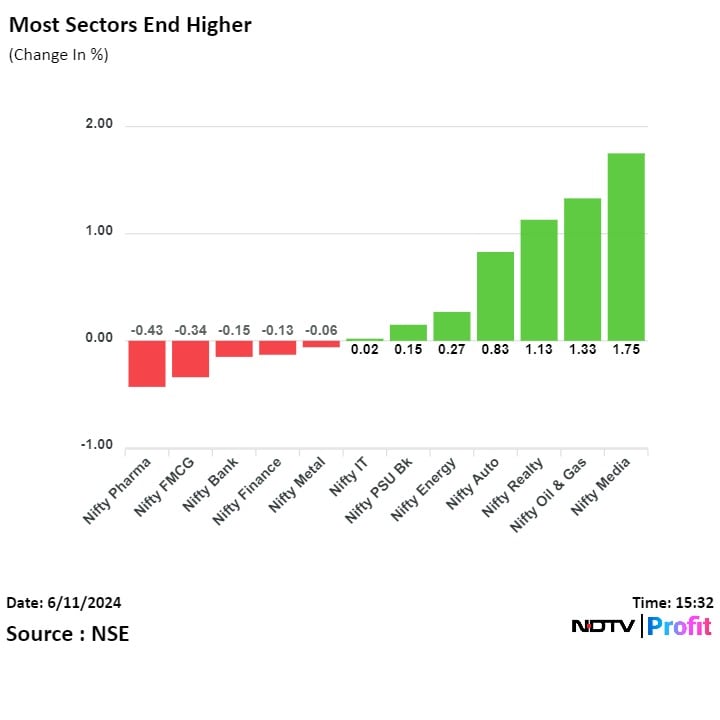 Nifty Media and Nifty Oil & Gas were the top gainers whereas Nifty Pharma lost the most.