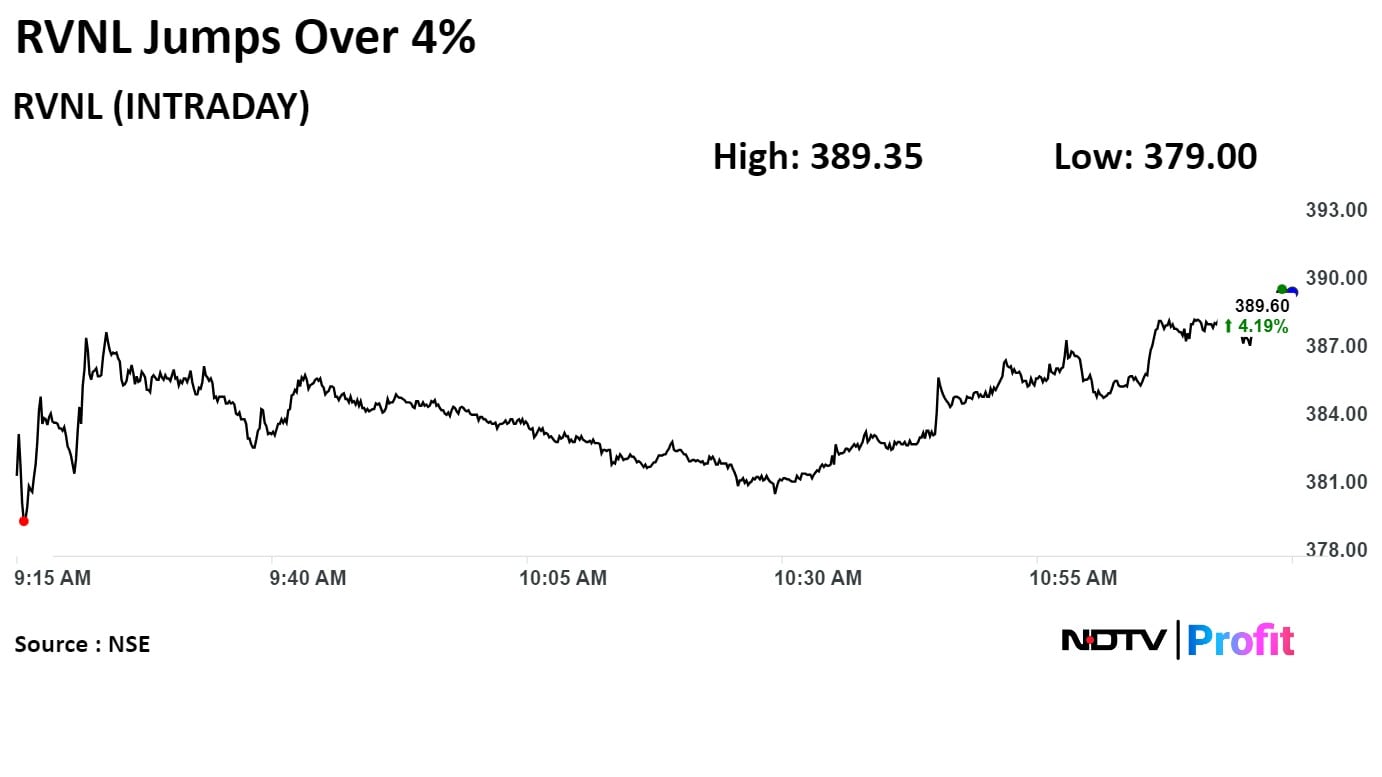 Shares of Rail Vikas Nigam Ltd. rose over 4% on Monday after bagging two contracts.