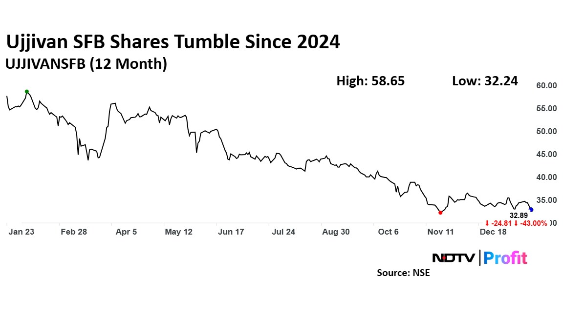 The stock of Ujjivan has fallen by 3% in 2025. It tumbled on Friday after the company's third-quarter profit fell 64%. The stock has been falling since hitting a life-high of Rs 63 per share in December 2023.