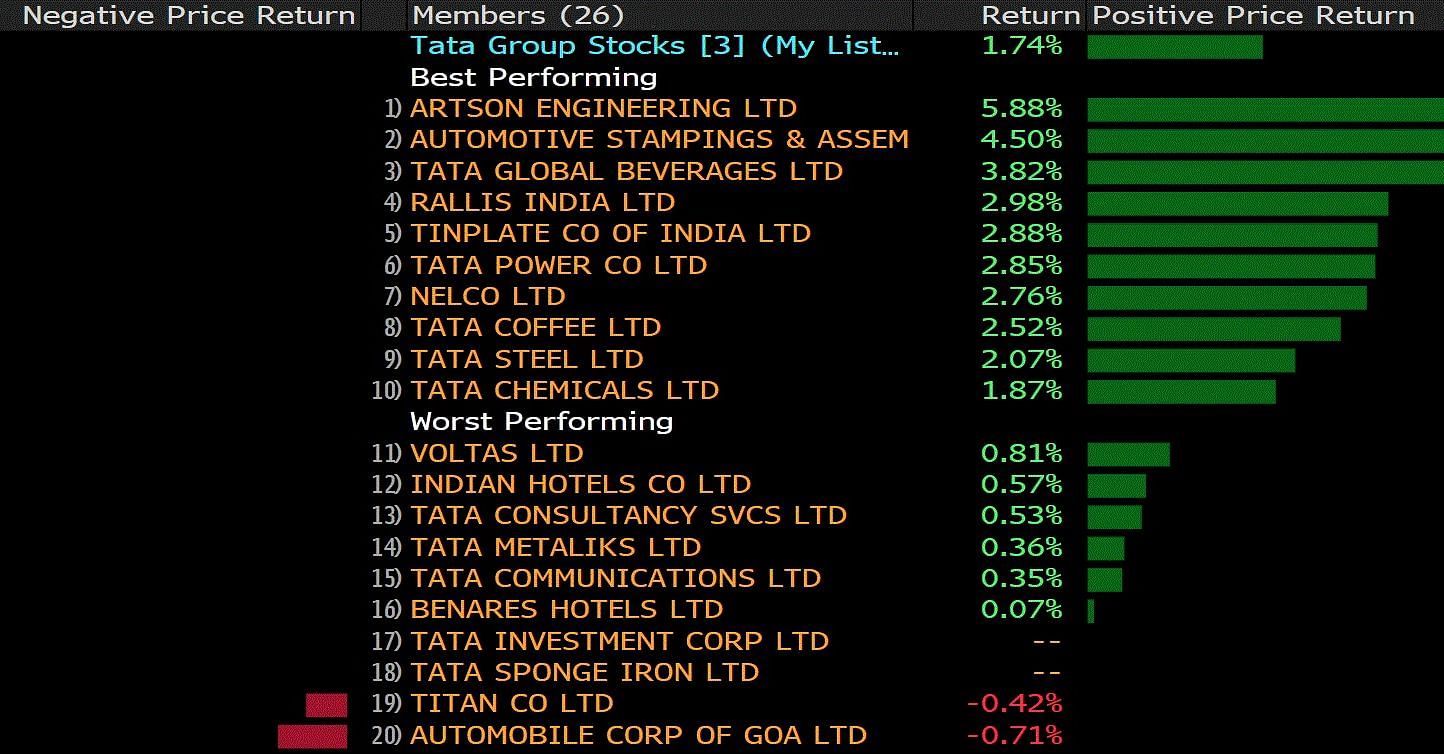 Shares of Tata companies gained after the Supreme Court of India put of hold NCLAT's order in the Tata-Mistry case.
