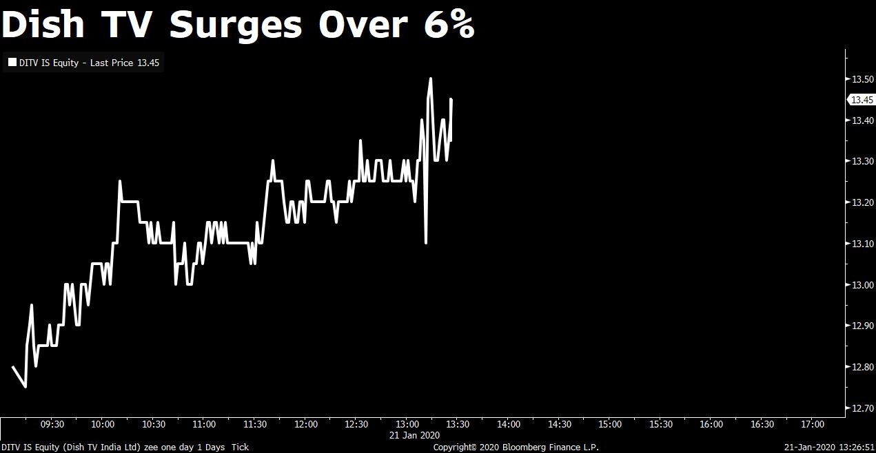 Shares of Dish TV India Ltd. rose as much as 6.27 percent to Rs 13.55 apiece—the highest since Jan. 10, 2010.