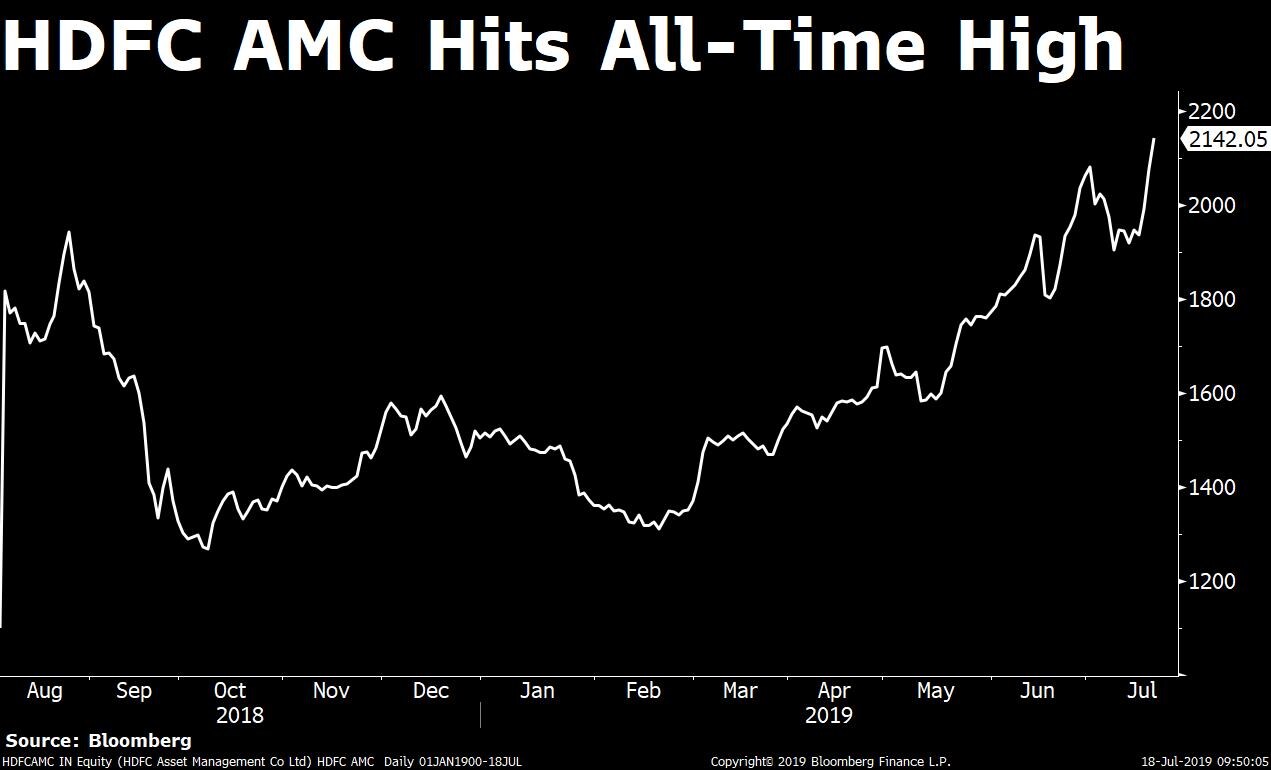 Shares of HDFC Asset Management Company Ltd. extended gains for the third trading session, rising as much as 3.5 percent to hit an all-time high at Rs 2,147 apiece.