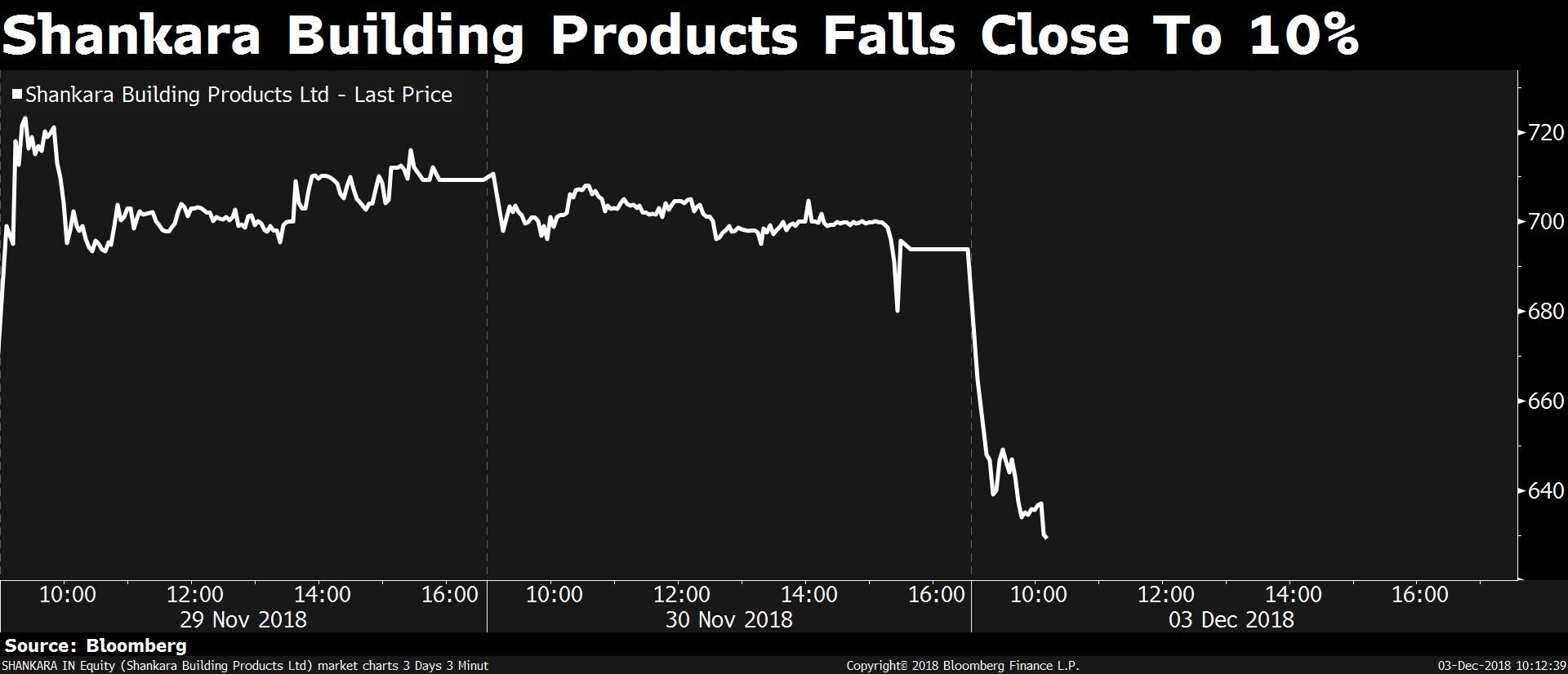 Shares of Shankara Building Products fell as much as 9.9 percent to Rs 625.30 apiece.