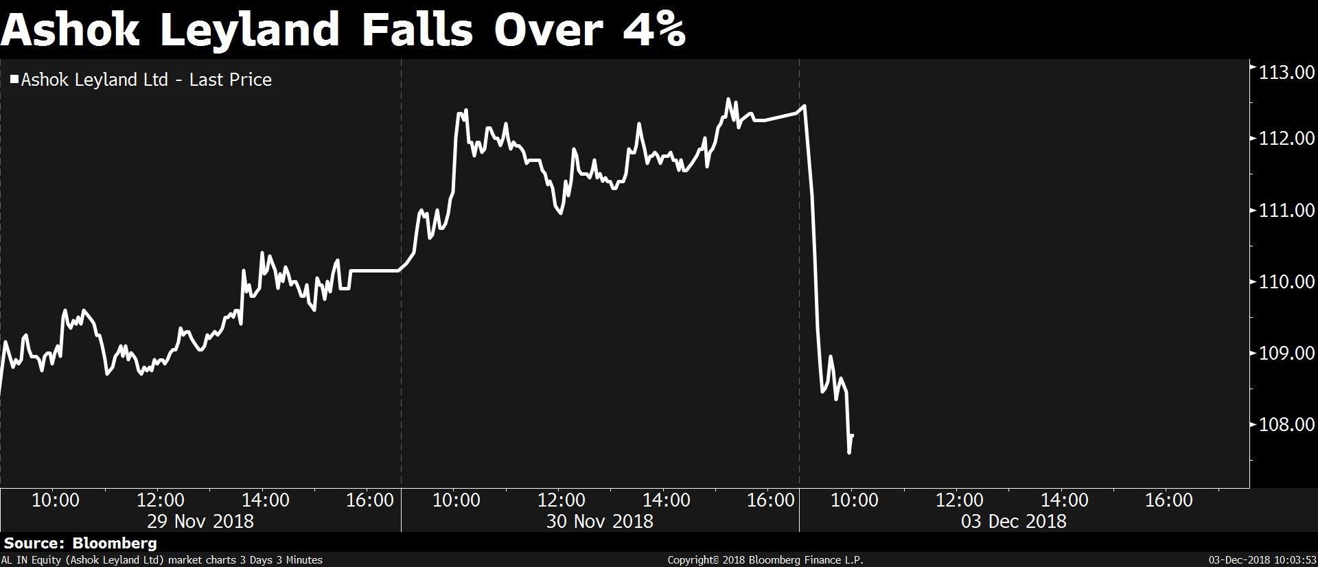 Shares of Ashok Leyland fell as much as 4.5 percent to Rs 107.25 apiece.