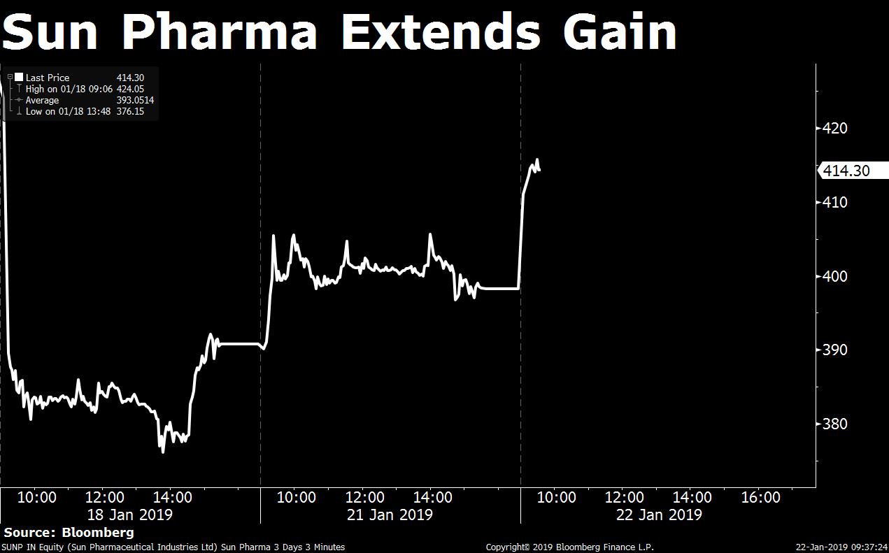 Shares of India's largest drugmaker rose as much as 4.8 percent to Rs 417.50 apiece.