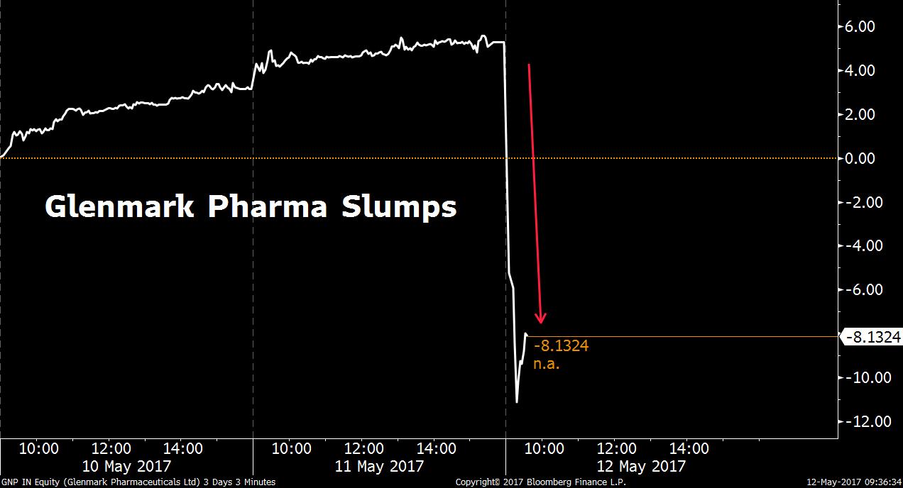 The drugmaker fell 1.9 percent to Rs 1,294 after the U.S. Food and Drug Administration issued a form 483 with four observations after an inspection of its Gujarat facility. The stock gained the most since last week.