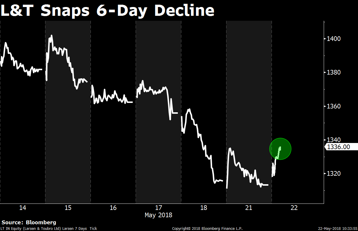 Shares of the construction firm snapped a six-day decline, its longest losing streak in over two months, and rose as much as 1 percent to Rs 1,326.95.