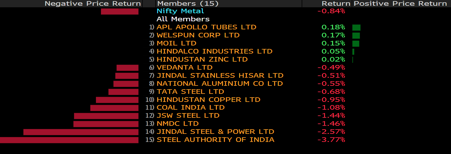 Steel Authority of India Ltd. declined the most on the Nifty Metal Index, falling as much as 4.5 percent to Rs 50.65 apiece. JSW Steel declined 2.4 percent to Rs 298.25 apiece.
