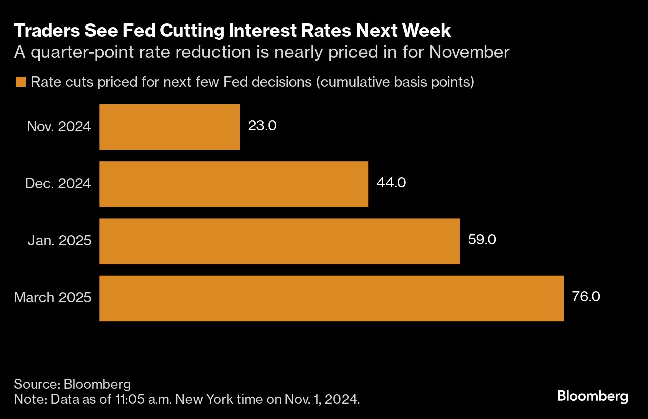 “We still think the Fed will follow a gradual pace of policy rate cuts, including 25 basis points next week and likely, but not a done deal another 25 bps in December,” said Tiffany Wilding at Pacific Investment Management Co. “While the US economy has been very resilient overall, we think today's softer jobs report was a good reminder that markets are not priced for a potential downside scenario for the economy that requires the Fed to cut rates more aggressively.”