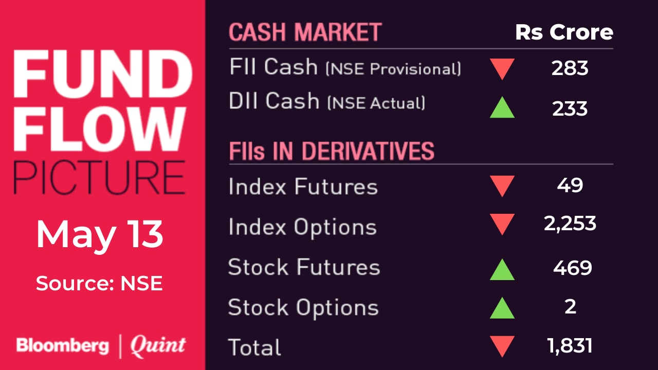 - Nifty Bank May futures closed at 19617, discount of 18 pts versus 22 pts discount