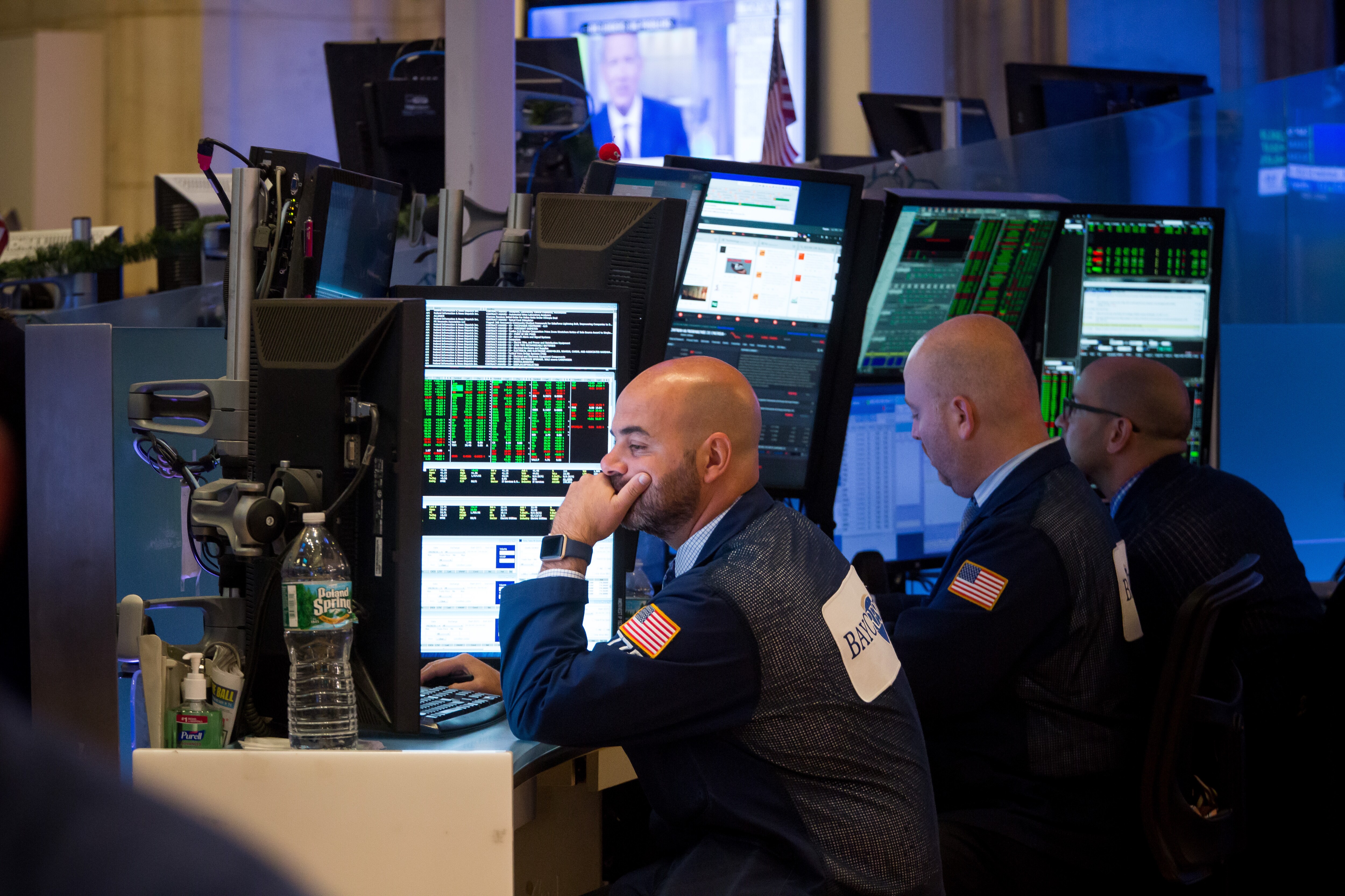 Traders work on the floor of the New York Stock Exchange in New York (Photographer: Michael Nagle/Bloomberg)