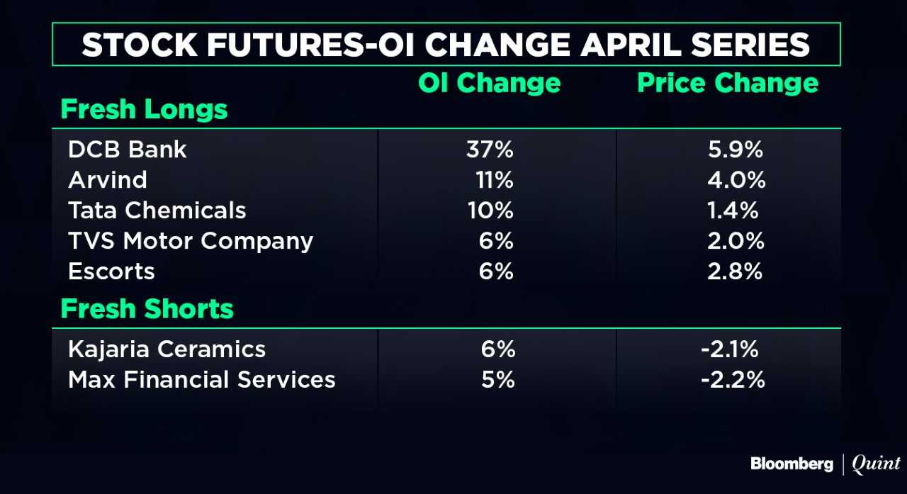 - April series: Nifty open interest up 1 percent, Bank Nifty open interest up 4 percent.